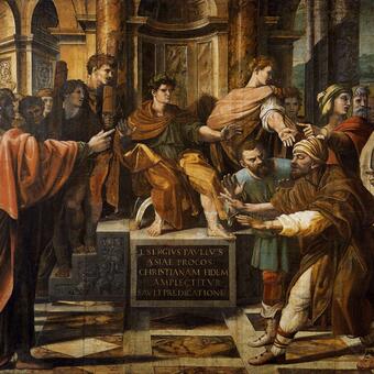 كان سرجيوس من أشراف روما، ونائباً للقيصر الرّوماني في قبرص. وقد ذكره القدّيس لوقا في اعمال الرسل (13/ 7)، انه آمن بالمسيح على يد بولس الرسول، واتّخذ اسم بولس إكراماً له، كما يفيد التقليد القديم. وقد تتلمذ للقديس بولس ولحق به الى روما. واخذه الرسول معه الى إسبانيا ورسمه أسقفاً. فأخذ يبشّر بالإنجيل، ويردّ الكثيرين إلى الإيمان بالمسيح، ويهدم معابد الأصنام، ويقيم مكانها الكنائس، إلى أن رقد بالربّ في أواخر القرن الأوّل للميلاد.