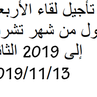 تأجيل اللقاء الأول من شهر تشرين الثاني 2019 إلى الأربعاء الثاني