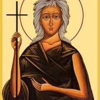 وانقضت الأيام والسنون، فمرّ الكاهن زوسيما في البرّية، وإذا أمامه امرأة شاحبة الوجه، كثيفة الشعر الناصع البياض. فأخذت تقص عليه سيرتها. ففرح بها زوسيما جداً ومجّد الله. فسألته أن يأتيها بالقربان المقدس. ثم طلبت بركته وصلاته، وأنصرفت إلى مواصلة جهادها في توبتها. وبعد سنة جاء يفتقدها. فوجدها ميتة ممدّدة على الأرض ووجهها يطفح نوراً وبهاءً. فدفنها وعاد إلى ديره. وكانت وفاتها سنة 521.