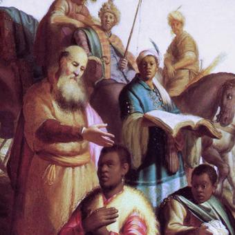 وانطلق فيلبس بأمر الله، نحو الجنوب. وفي طريقه التقى برجل حبشي خصيّ، له منزلته عند ملكة الحبشة، فردّه الى الايمان بالمسيح وعمّده. فكان ذلك الرجل خير مبشر بالانجيل في الحبشة.